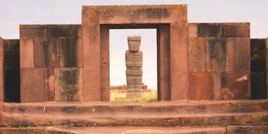 Located in the vicinity of Lake Titicaca, consisting of seven architectural structures: Kalasasaya, semi - subterranean Temple, Akapana Pyramid, Kantatallita, Kerikala, Putuni and Puma Punku. The most interesting piece of high development and demonstration of cultural iconography is the Sun Gate.